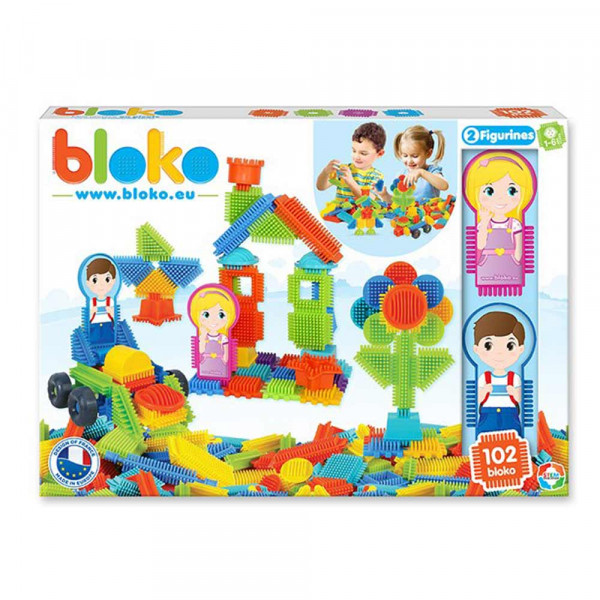 V škatli so 102 BLOKO kock različnih oblik in barv, ki omogočajo grajenje različnih konstrukcij in neomejeno ustvarjalno zabavo. Pakiranje vključuje 2 kocki-figurici.