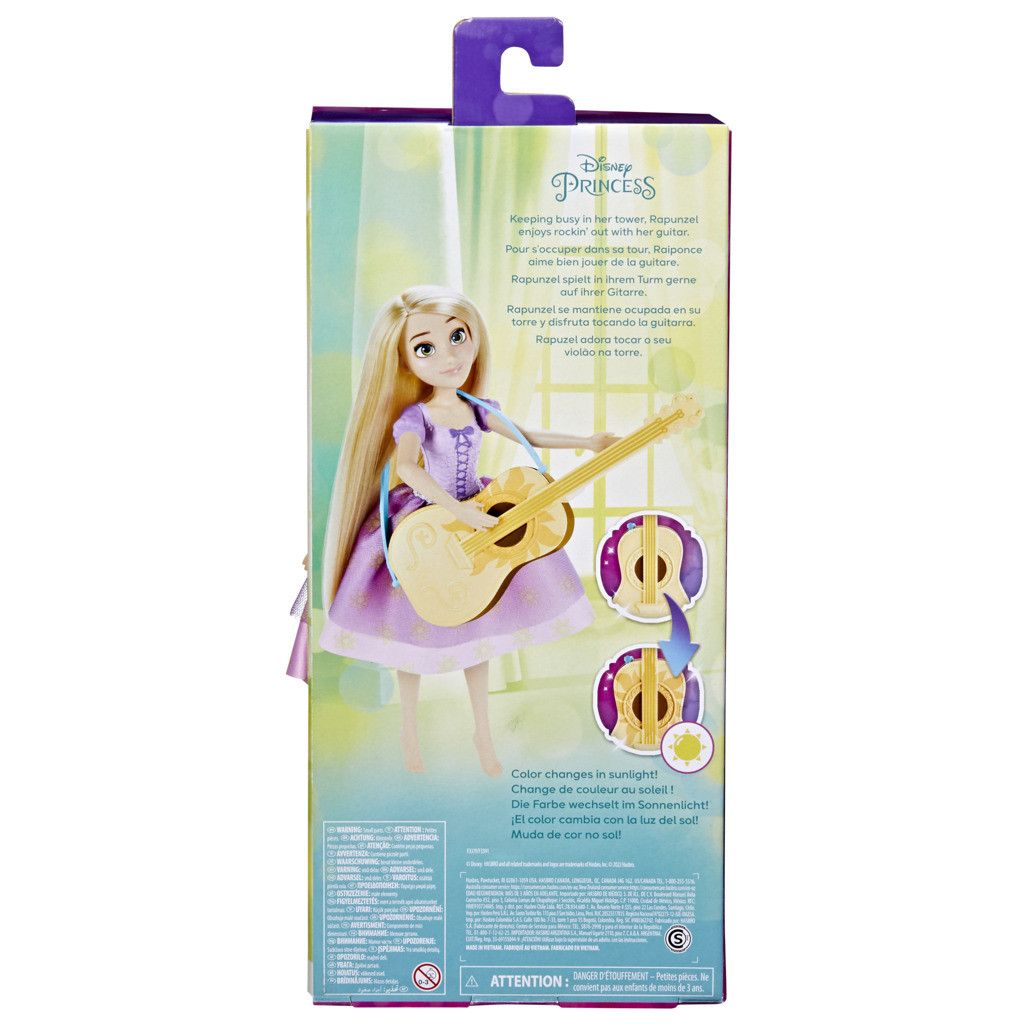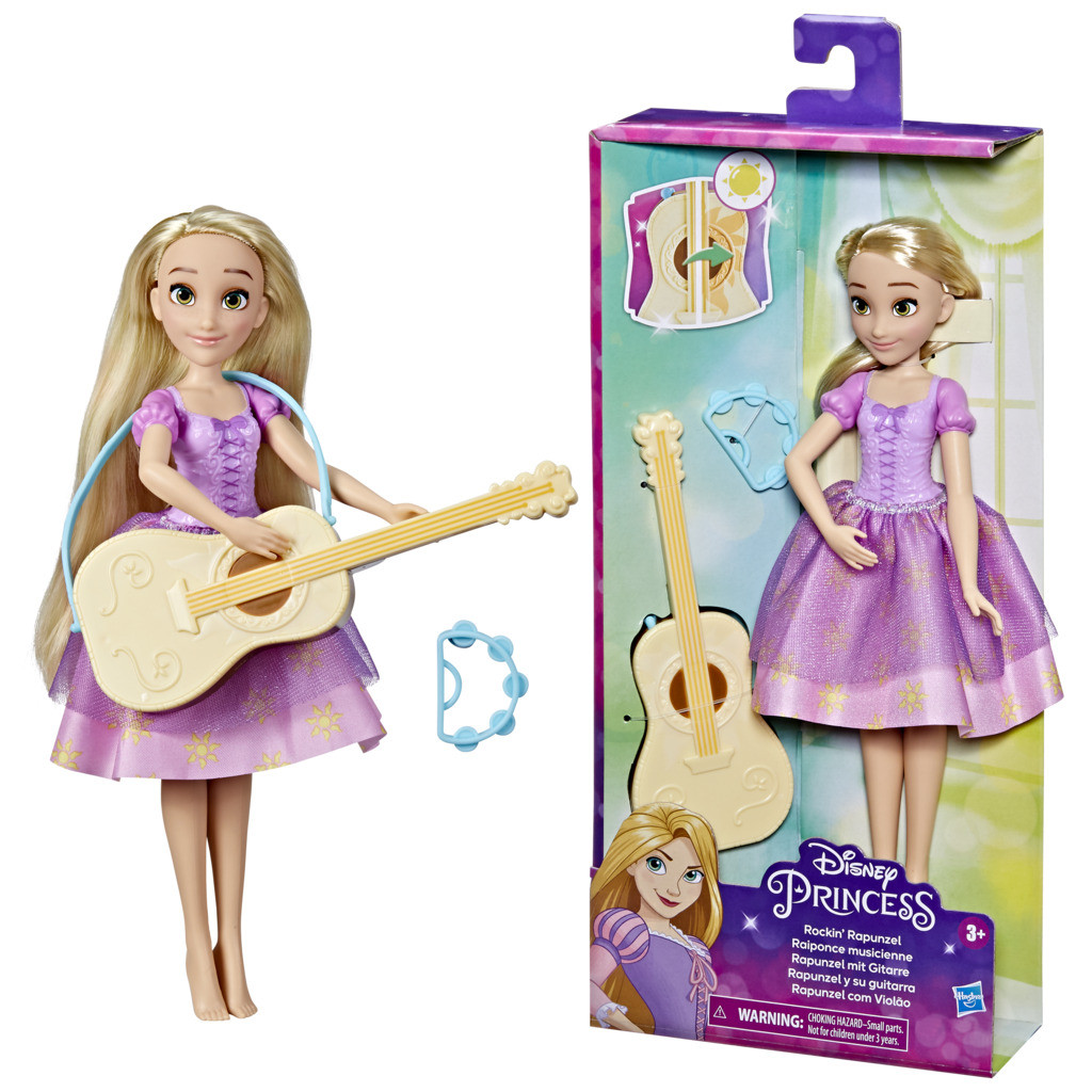 Disney punčka Zlatolaska je nastala po navdihu istoimenskega pravljičnega lika. Punčka Zlatolaska je oblečena v čudovito obleko. Priložena sta kitara in tamburin.